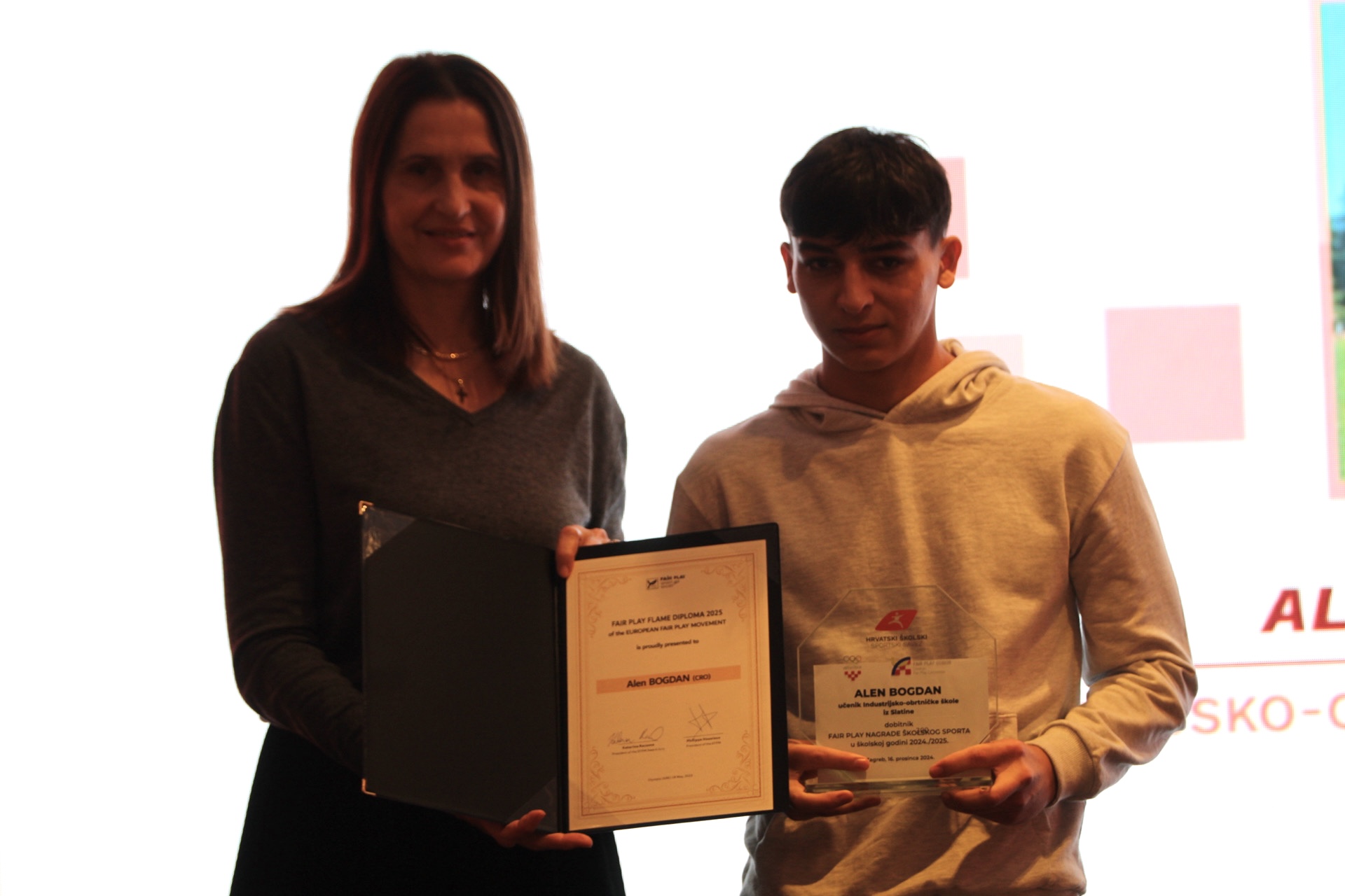 ALEN BOGDAN (CRO) from the Industrial and Craft School in Slatina received the FAIR PLAY FLAME DIPLOMA 2025 from the European Fair Play Movement — a truly well-deserved recognition.